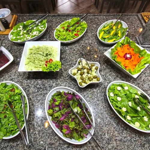 Oferecemos um buffet variado com saladas frescas, pratos quentes, massas e acompanhamentos típicos da culinária regional. Ideal para quem busca variedade e sabor à vontade.